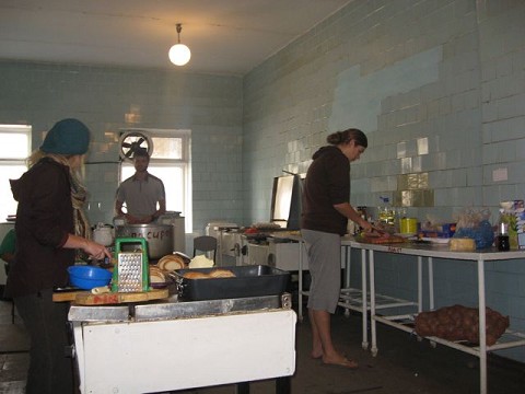An abundance of hot drinks, hot chocolate, teas, and coffee are available throughout the day. Breakfast consists of oatmeal, cereal, or toast with jam. Lunch has been a variety of sandwiches with fried eggs, cheese, tomatoes, sausage, etc, and soup or baked potatoes with all the fixings. The evening meal brings many reminders of home as we enjoy BBQ chicken, mashed potatoes, cheeseburgers, French fries, cheesy potato soup, spaghetti, and many other delicious dishes.