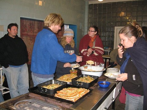 Zach, our Chef                                  Marissa, Johnny, and Pamela fixing pizzas