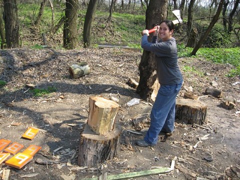 Splitting wood for the summer camp and for bonfires!!