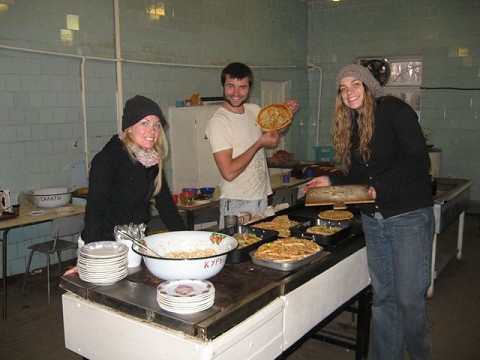 Zach, our Chef                                  Marissa, Johnny, and Pamela fixing pizzas