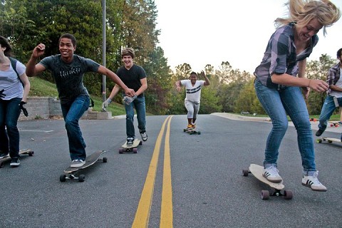 longboarding with some friends around Liberty University
