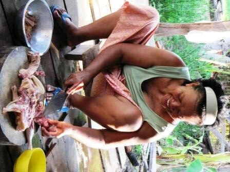 Mom spends all day cooking for us and the food is delicous!  We get to eat sticky rice and garlic chicken almost daily!  We eat in a little bamboo hut outside, sitting cross legged, and eating with our fingers.  I love it.  This hut is also mom and dads “bedroom” and they sleep out here every night.