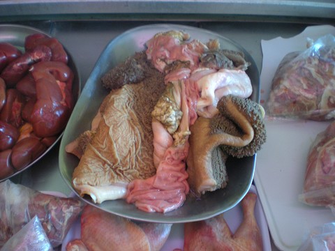 every corner here. I saw a whole skinned cow hanging in a shop the other day,