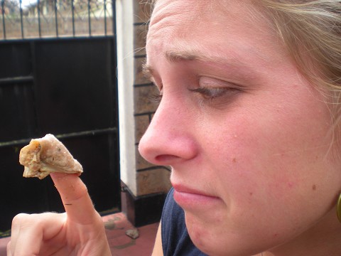 smelled like blood and death. Thinking about eating intestines on top of the smell…