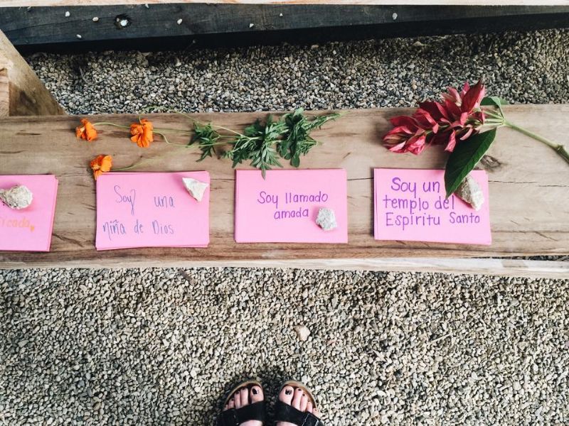 After this activity, we had Bible verses written on cards (in Spanish) along with a correlating phrase on the back. These statements were designed for an individual to declare over herself: “I am His daughter” or “I am a new creation” to really speak truth over their lives as individuals and not limiting Scripture. I say, “limit Scripture,” because I know I can read a verse and think, “that is so great to tell other people about,” or “I am so happy God redeemed everyone,” and I forget I am THE ONE Papa is talking to as I read His Words for me in the Bible. It is written for all of us on an individual bases as a love letter to everyone on earth…but I digress…Here is a photo of the cards: