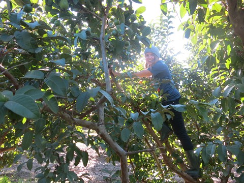 Picking guavas to eat that same day