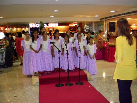 On Thursday morning, Samantha (from team PLJ), Kelsie, AmyD, and I woke up early and headed across town for a Christmas concert. Oh yes, a Christmas concert, Filippinos celebrate Christmas during every month that ends in -ber. Twelve of the girls we have been working with this month were performing so we went to cheer them on. What we were not expecting to find was that this “Christmas concert” was actually a super posh open house in a mall. It was kind of fun to eat free food and have everyone take our picture because we’re white, but it was more amazing to see these twelve girls get up there in their traditional Filippino garb and sing their hearts out for all of these stuck-up posh old ladies, and they were awesome singers.