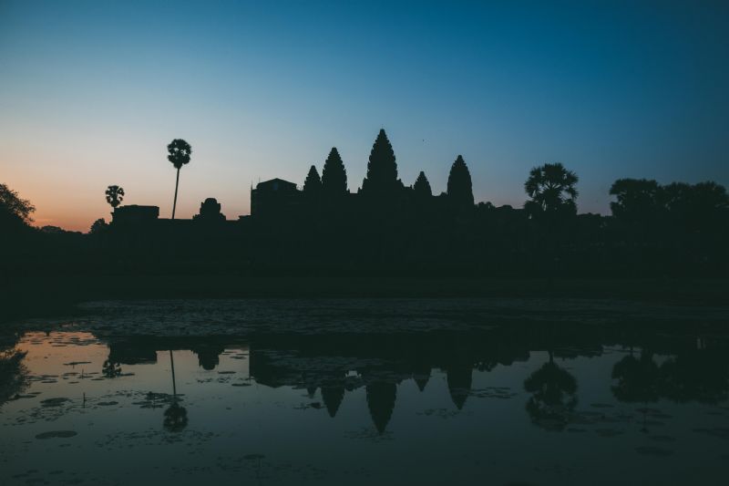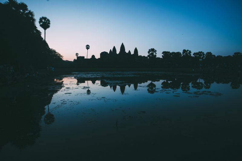 We arrived early to watch the sunrise over the moat in front of the temple.
