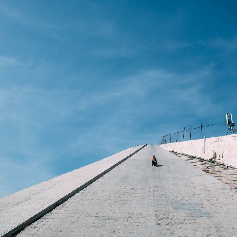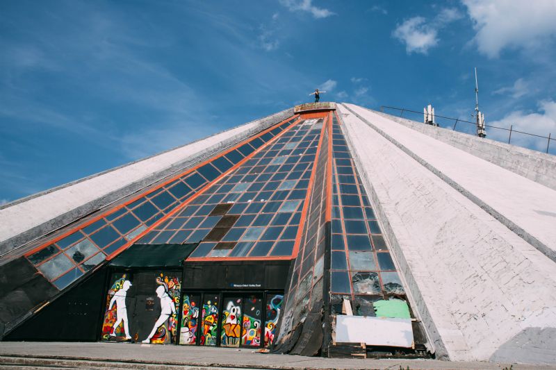 After WWII ended, Albania became a communist country (The involvement of Albania in the protection of the Jewish people during WWII is fascinating). The ruler of the country at the time was a paranoid individual and was focused on “protecting” the country from attacks – he built a crazy amount of bunkers around the country, among other things that make him famous. This pyramid was built by his daughter in his honor – and has since been mostly abandoned, except for an independent news station that has offices inside and occasional homeless person.