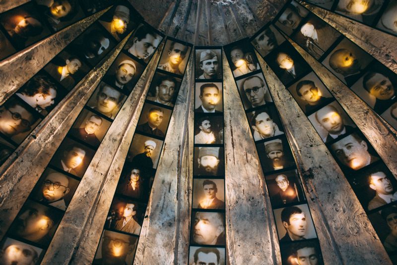 The museum begins in a dark entryway with photos of old rulers and historical evidence of the communist oppression.