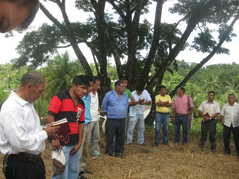Prayer meeting/ribbon cutting ceremony to bless Abelardo's new cardamom refining business (Abelardo is the one in the red and black shirt)