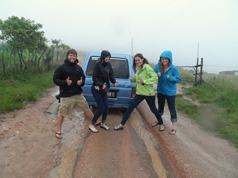 As we head up the mountain, we realize this van has some giddy ups. We were making it up the hills in no time! Then out of no where…. Bam, ba bam, SKEERRRPPP! You guessed it, we were stuck. Funny part was that in third world countries, you don't really have people that drive by that will help you out. We had three people drive by, without even a glimpse of good samaritan in them. What we had was two local people walk down the hill & bring us a shovel & a pic. Ha ha. Thank you Des for taking pics!