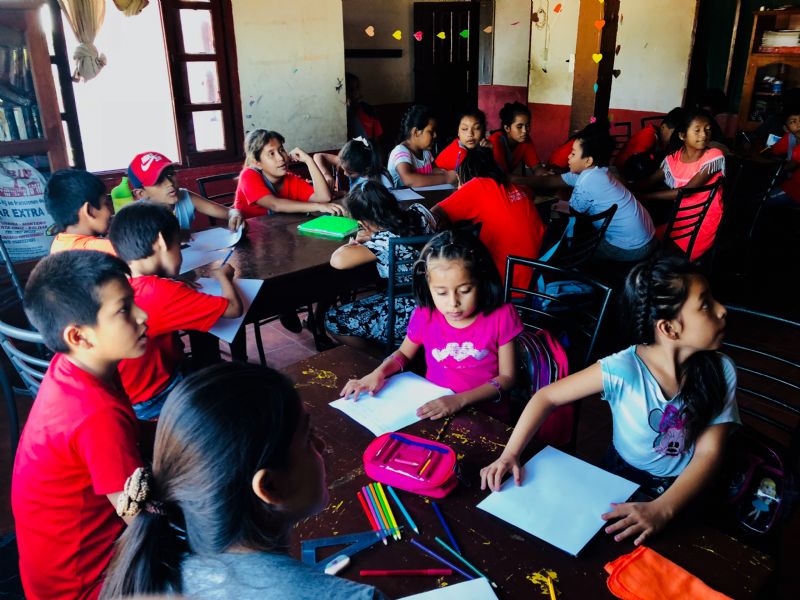 Our room here is on the second floor of a three story cement building. It’s a classroom, one of four on this level. Above us there’s a meeting room and a small library outfitted with three desktop computers. Below is an office and a sanctuary and a small kitchen. The hermanas begin cooking for the children at 7:00 am every morning: plantains and meat and lentils and lots and lots of rice.