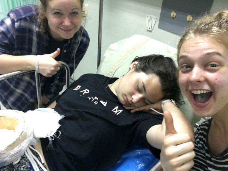 Eventually we made a stop where the rail staff found a nicer hospital. This is where it gets real interesting. They help me off the train, escorted by my friends Jenn and Kristine, and into what they called an ambulance. I looked around slightly to see that the EMT’s were very young boys. I swear they looked 15. And didn’t speak English. Apparently I was saying and doing ridiculous things in there too like trying to breathe with a plastic bag that was meant for puking. It was mostly a blur. At some point they wheeled me into the hospital which made me freak out even more because first off, I saw two rooms. It looked more like a vet clinic than a hospital (which it turns out was just the ER). And second, the only 2 people who spoke English had very broken English. We still had to use charades.