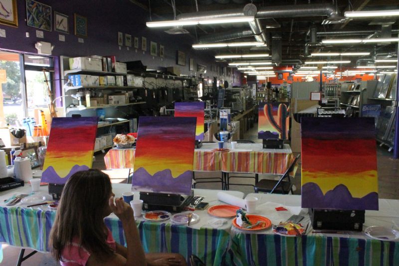 This past Saturday I hosted an event at Jerry’s Artarama (my favorite art store) with five of my friends/mom. I had hoped to have more people but I actually really enjoyed the intimate setting. I led them in painting a saguaro cactus at sunset and it was just a really enjoyable time.