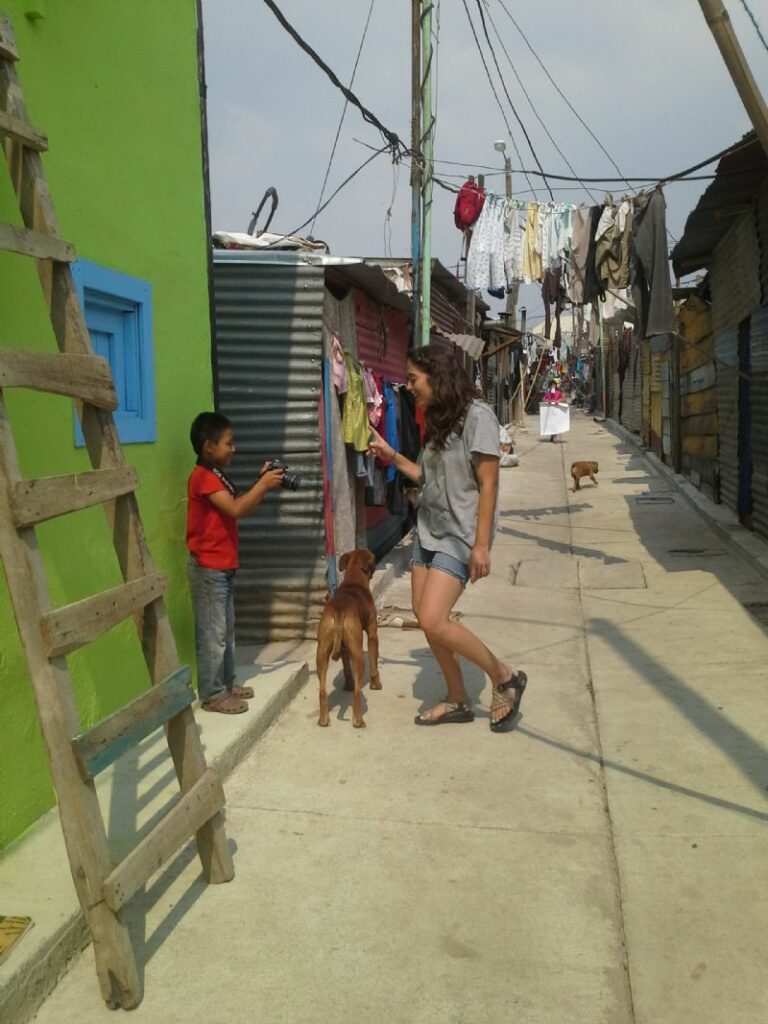 We hauled buckets of trash and dirt to the dump, walking with the Guatemalans and learning how to do this task. They have the brilliant idea to carry it on your shoulder instead of less easy ways. We also carried sand to the street to smooth it out. After we did this it was time for the concrete. We hauled that in buckets as well. We had to walk a little ways then up a small hill every time. It was great to labor alongside them. Most of all it was cool to see them take responsibility for their community.