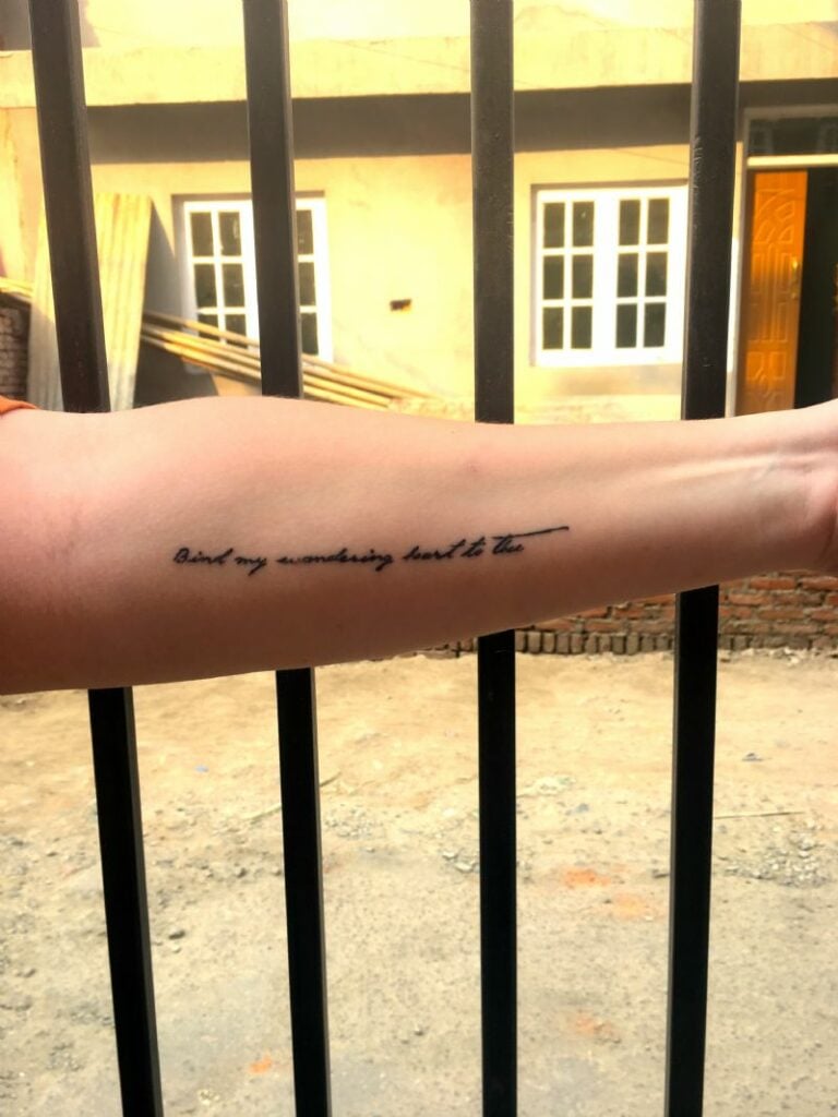 Two weeks ago I got a tattoo on my forearm that reads “Bind my wandering heart to thee”. I went to a tattoo shop here in Nepal to get it and yes, it was clean. The Lord has been teaching me a lot about going to him for everything instead of going to others, or instead of thinking that I can take care of it all myself.