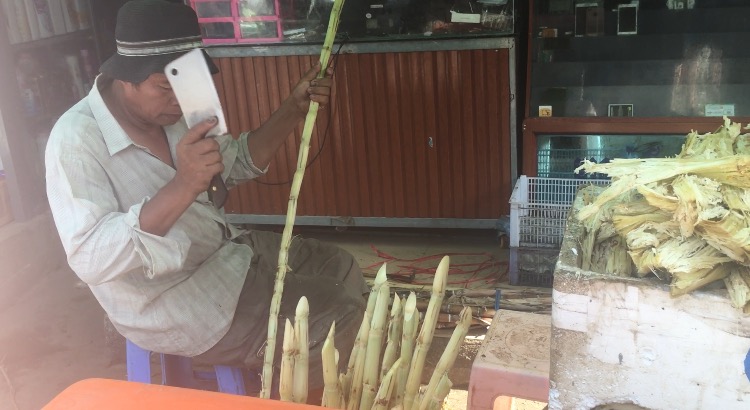 Taste– Our amazing host prepares our meals and they are delicious! She makes us green curry, yellow curry, egg rolls, noodles, stir fry and the best wontons I’ve ever had! Cambodia has the most delicious mangos that I have ever tasted. They are so sweet and we have been eating them with practically every meal. No complaints here. We have coffee or red tea most mornings, and we recently discovered a drink made from the juice of sugar canes. The man strips the outside of the bark with a butcher knife and runs then under this wheel-like contraption that crushes the cane and squeezes the juices out. Its cold, refreshing, and delicious.