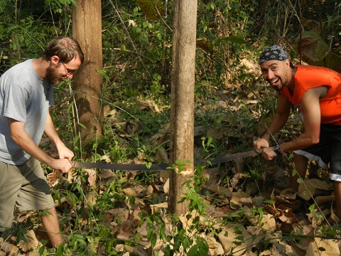 Here I am with Brian cutting down a tree, we used the trunk of that tree to build a fence at the school near where we are living this month. We have been helping them do some construction projects at the school, as they are preparing for a visit from the Princess of Thailand.