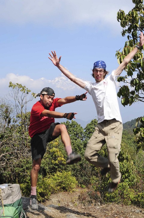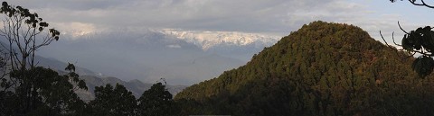 The second bus ride took about an hour and a half to make it the 20 km out of the city to our starting location. The first half of the trek took us from the busy highway through two small mountain side villages. The trail (or the trail I made?) took us literally across the yards of the small nepali houses. There are millionaires who pay huge sums of money for views that are pitiful in comparison to the views from these small shanties. Sweeping vistas of farm land and the towering peak of Panchase rose before us. After about four hours of walking we transitioned from the rural road to the ‘real’ trail. The trail rose above the farm land and the trail steepened, giving way to a countless number of stairs. Apparently nepali trail builders don’t believe in switchbacks. The difficulty of the hike increased greatly. After about two hours the sun began to set, but we were told by a local “only an to the top!� Lies. The sky eventually darkened and we pulled out our headlamps. The stairs simply wouldn’t end. About half way through the hike we met a woman named Malati who even though she was over twice our age, continued to kick our butt as we hiked up the ridge line. Near the end of the hike, we were even rewarded with a little snow on the ground. FINALLY! We reached the summit. We settled into a hostel a few hundred meters off the peak and awoke to some incredible views:
