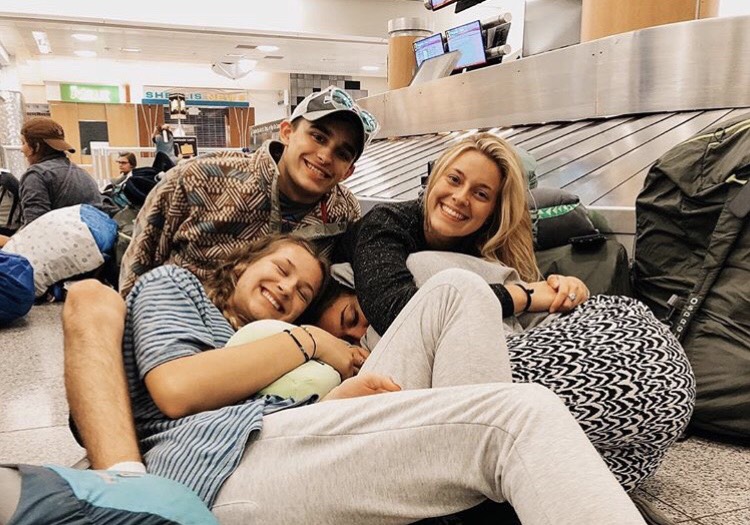 1.) Always stay comfy by cozying up with your pals during a 7 hour layover.