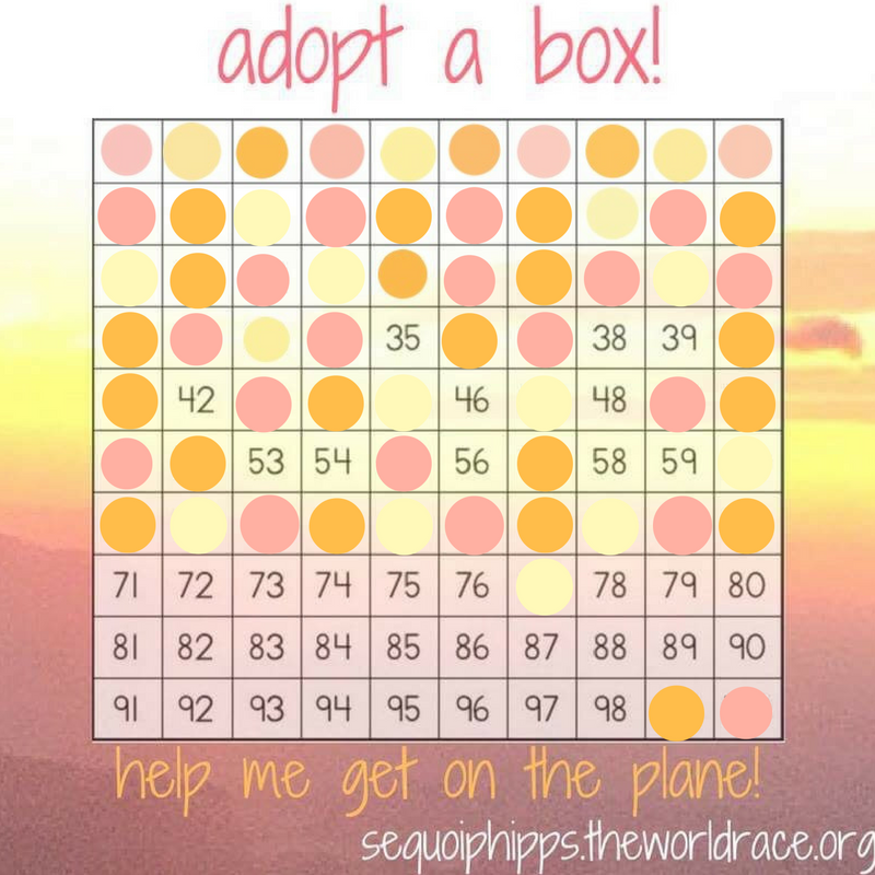 Will you consider joining me in this? I love this fundraiser because it really does show that every value matters. Anything that you are able and willing to donate will make an impact on my fundraising. I will update the chart as donations come in, so you know what boxes still need adopting.