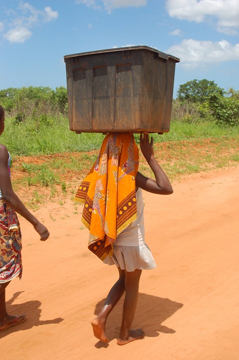 3 – Heavy items are carried on your head, especially water. The lack of cars or any other means of transport makes carrying weighty objects a challenge, so to relieve the stress on their arms, the Mozambicans carry things on their head. It is truly amazing how far they can walk with a 30 pound water jug on their head.