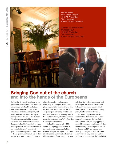 approach to reaching the lost. Cafes, hostels, bookstores, etc are