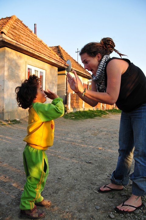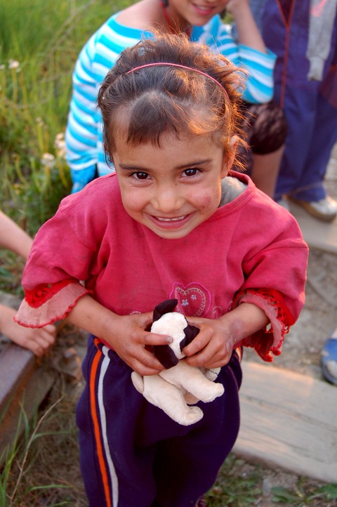 With time running out I was wondering if I would be able to find someone special enough for my last toy… then I met Imola. We’d just pulled up to a village and began greeting the children when I saw her. She was covered in dirt but had a huge smile spread across her face. Imola is 4 years old and lives in a little Gypsy village that we were able to visit on four different occasions. The Gypsy children are beautiful in every sense of the word, but Imola captured my heart from the beginning. She appeared shy at first, standing in the back of the crowd, but in no time she was joining in, singing, dancing and laughing along with the rest.