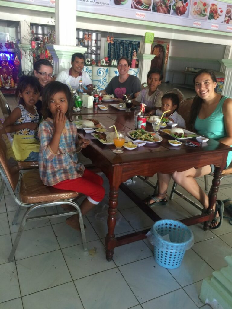 However, the hardest part about meeting them was that we were not able to communicate. We talked to the director, Mr. Sao Thy, of the school we have been volunteering at and he offered to translate for us. Of course when we wanted to find these two, we could not. Our time here was running out. We are leaving soon and translators are very difficult to find here in Sisophon. I prayed to God that if he really wanted us to get to know these kids and to help them that He would make sure they were at the park in the nexT few minutes. As I finished my prayer I heard a kid scream. I look over and there is the little boy, running to me and grinning. As he approaches he launches himself into my arms and gives me a big hug. His sister is right behind him and does the same. We bring him to Mr. T and tell them tomorrow we want to take them to lunch. We say our goodbyes but that we meet them at the park at noon the next day.