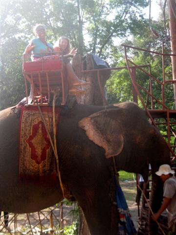 3. Riding an elephant around a temple on a main road and then later seieing the lephant walking through the riverside tourist area.