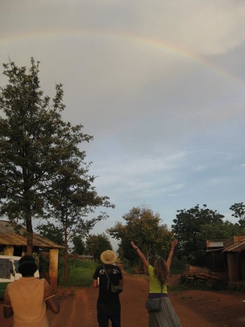 Later that same day, after we has finished an outdoor crusade type thing, we asked to PRAY with the 20+ kids that had gathered. We all held hands in a big circle and Micheal begain PRAYING with no translation. We are really not sure what happened in that moment other then you could feel a physical change in the atmospher and when we were finished PRAYING there was a perfect rainbow over us.