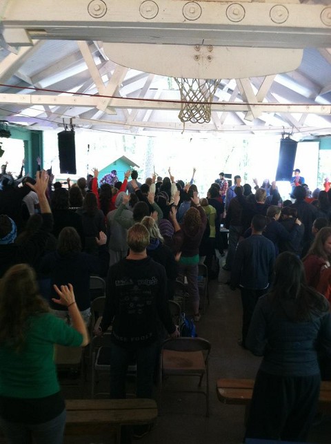 The air was thick with the Holy Spirit, voices ringing out in worship. My voice was singing along with the words:
