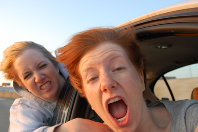 Lisa’s car almost caught on fire so my roommate and I went to pick her up from her house. On the highway on the way home we got a little crazy. It was one of the first warm days of Spring. That can do wacky things to a person. I think she may have been trying to hurt me here. 🙂