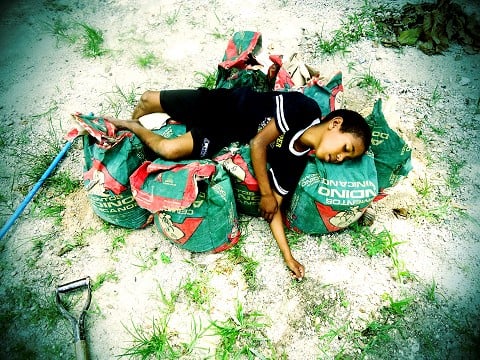 At the end of the long day, he sat down next to me, and I asked his name. His response was so quiet, I had to ask him to repeat everal times and I still couldn't get it. His big brown eyes were sad, and our whole team noticed that he hadn't smiled the whole time he had been working with us. I finally discovered his name – "Junior." He quietly whispered 'agua' to me as I sipped my cool, clean water from my Nalgene. I had already drank two full bottles of water, and with less than half in my bottle, I let him have the rest. He hadn't had water all day. He guzzled it down and contentedly sat next to me, watching us girls. I wondered,
