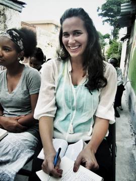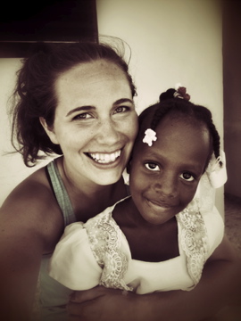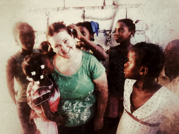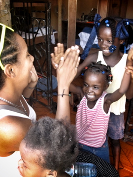 Ashley playing hand games with the girls at a local orphanage. Carrefour, Haiti.