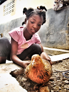 My sweet neighbor playing with their chicken. Carrefour, Haiti.
