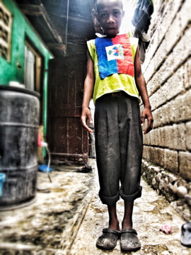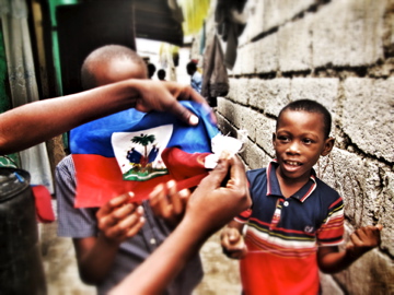 Our neighbor holding a Haitian flag in an alley near the church. Carrefour, Haiti.