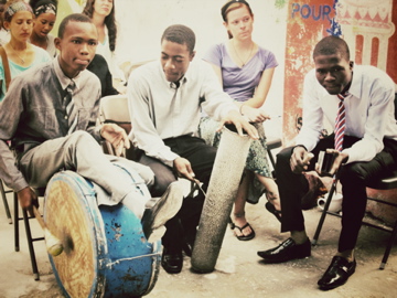 Enjoying the incredible voices and percussion at the street church. Carrefour, Haiti.