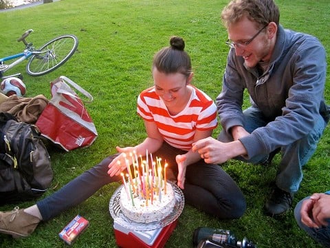 Celebrating many birthdays this month.  This is my friend Mackenzie and her husband Josh, celebrating with a HOMEMADE confetti cake at Greenlake!
