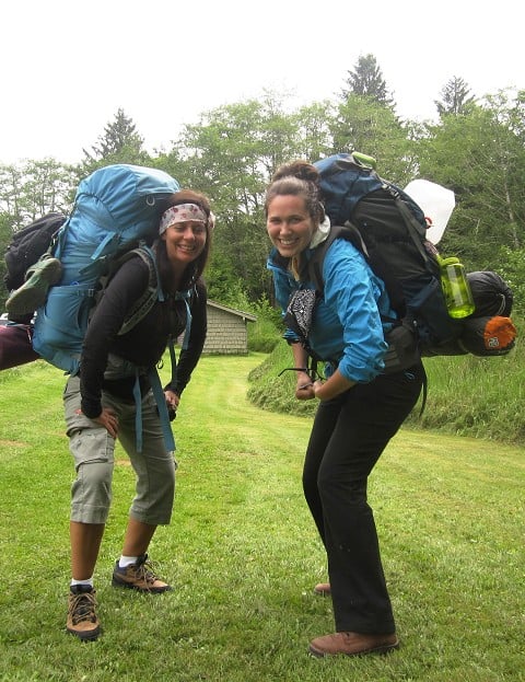 My coworker Lisa & I gearing up for a 3-day backpacking trip on the Olympic Penninsula.