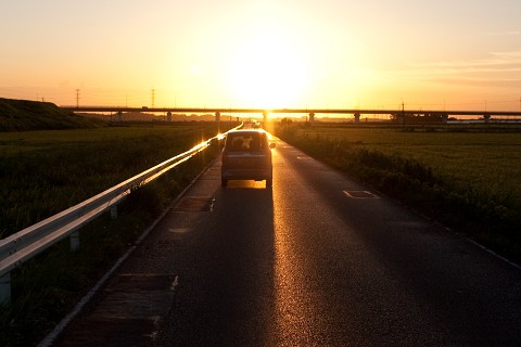 (Driving back from the airport)