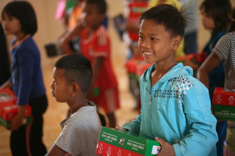 This is the church in Cambodia where me and my team are doing ministry this month. Our ministry host, Say (pronounced “sigh”), his mother Gumleang, and sister Sotjieut run the church which sits on the outskirts of a poor village they minister to. There are probably 2-3 children for every adult we have seen in the village, so children’s ministry is a huge part of what they do, but more on that later. The people here are largely unskilled and live hand to mouth. The problem with a church in a place like this is that often the members migrate to find better work, so it is difficult to grow and hire the types of positions one needs like children’s minister, women’s leader, or skilled teachers to train people on ways to support themselves like weaving or agriculture. Pastor Say does odd jobs like delivery and taxi work to support himself while running the church. Being here with him, it is very easy to see his heart for the children and people of the village. Part of our ministry here is supporting him as he takes the gospel to the people of the village, praying for them and encouraging them. This has been one of my favorite things to do, besides loving on the droves of kids around. Today is Sunday, and after church we were able to participate in a Samaritan’s Purse delivery of Operation Christmas Child shoe-boxes! At my home church, Elevate, in San Diego, we have participated in OCC for about 3 or 4 years straight, and what an awesome blessing it was to actually see the boxes delivered and opened! I was so sad that my phone was broken and I could not take any video, but these pictures should do justice well enough. Picture break! BIG one. Hold tight.