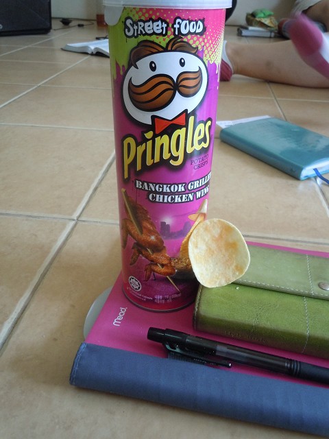 go down. This morning I decided to skip the cereal and go for Pringles. FYI: The people of Thailand are being ripped off by the Pringles’ Company. Cambodia had Pringles just like we have in the US but Thailand has super small Pringles that don’t taste like they should…. but they do have some interesting flavors including Grilled Shrimp and Seaweed.