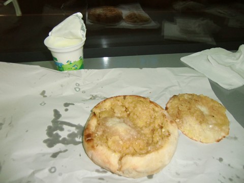 So this is a bread bowl filled with the juice of cooked beef, cream, and eggs and then put into an oven…so good, so fattening and definitely hard on the stomach.  Liquid yogurt accompanies this meal to balance out the greasiness.