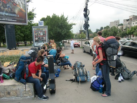 It is 7 hours time difference for EST. My airporter already has 2 holes in it. Duck tape here I come. I broke a latch on my pack because I was tightening it too much…carabeners work wonders. Total it took from Indianapolis to Bucharest, Romania: 1pm on 7/10/2011 to 7am on 7/11/2011 = 18 hours! We are staying at a lovely hostel which feels like home…there's even a kitten to to play with, YAH! We will start training for the leaders tomorrow, learning about finances and a multitude of leadership responsibilities. Then the rest of the squad will join us in the afternoon. One more thing…Bucharest has pink toilet paper, this is so cool haha!