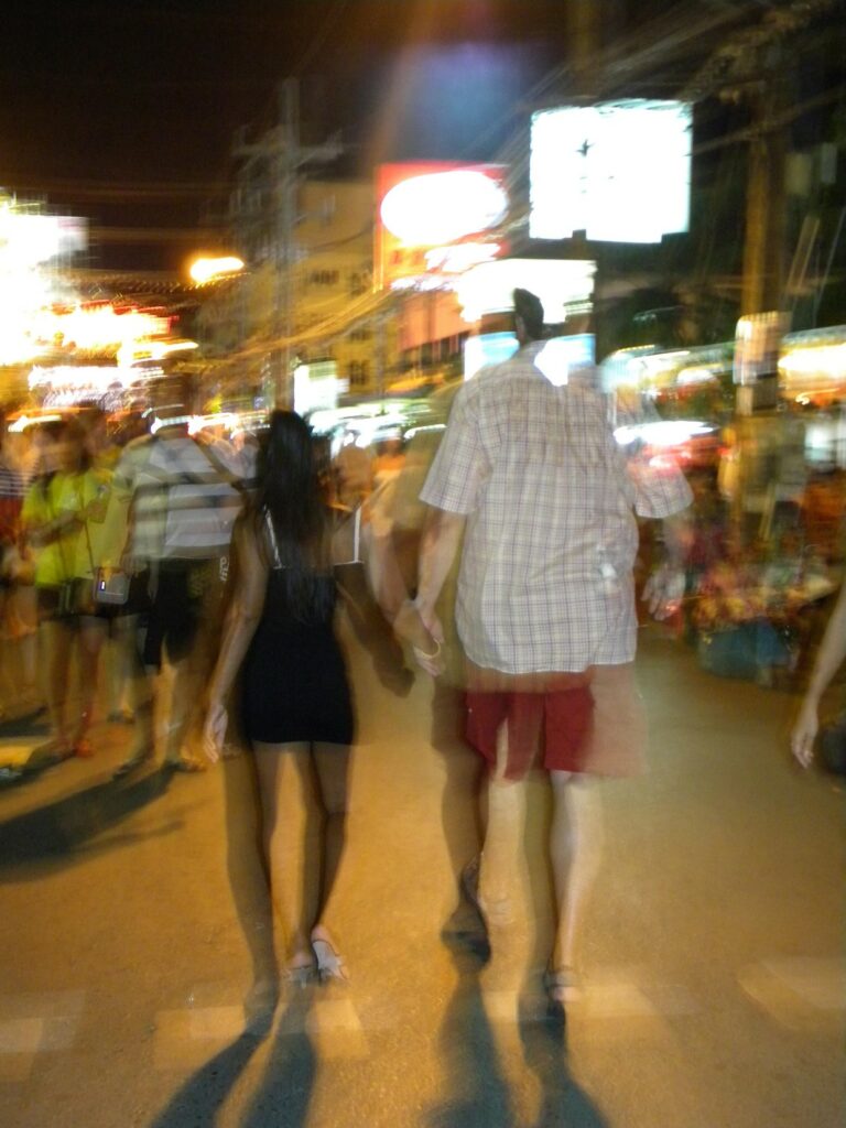 As we make our way down Bangla street every night to talk to the girls in the bars, I see dozens of western men hand in hand with a young Thai girl. Most of the men are older, in between their 40s and 50s. Sometimes when I see them I just want to punch them in the face. I want to shake them and scream at them, “What the hell is wrong with you!? You can’t just buy women and have them do what you want!” Because these girls wouldn’t have to be selling themselves if there wasn’t a demand. They wouldn’t have to be dancing around poles for hours or pretend to enjoy being groped by different men every night. They wouldn’t have to get themselves drunk to tolerate their lives. But because the men that come to Bangla road want it, they get it. So each night I found myself looking at these men in disgust. I would shutter and roll my eyes at them. I definitely judged them. I hated what they did to some of my friends. I hated them.