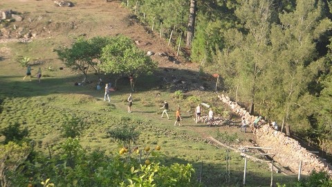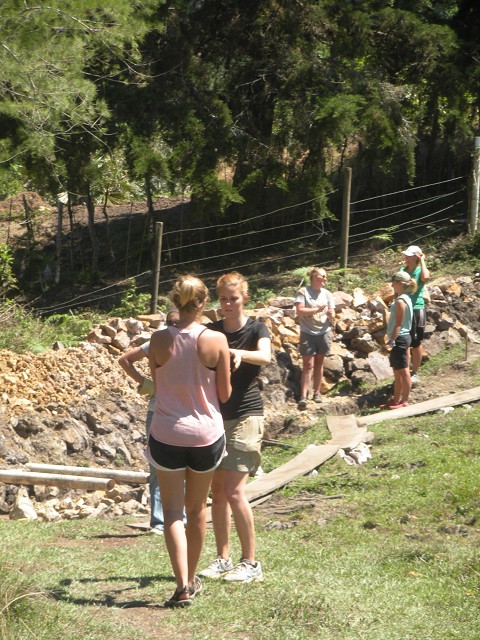 Building a rock wall for the tilapia farm