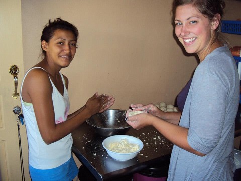 making pupusa with one of the young mothers at