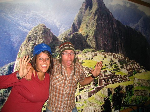 Me and Jon at Machu Picchu a year ago. Ok, you got us..it was at Chifa restaurant the night before we left for Cusco.